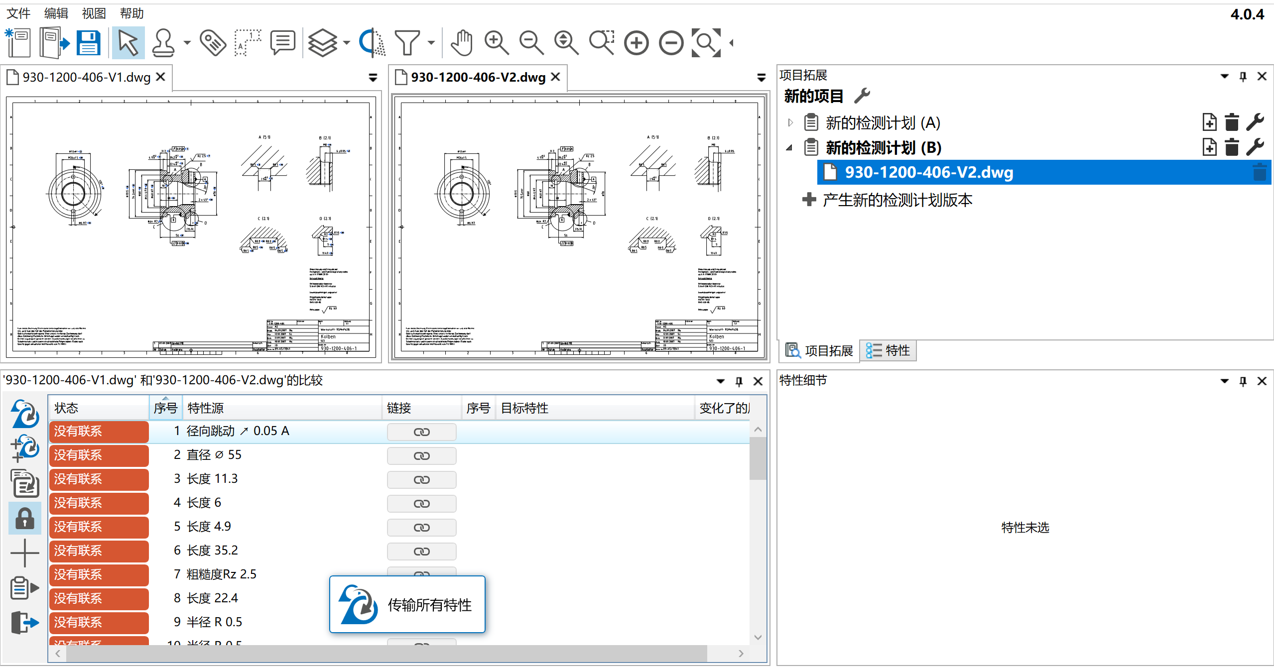 • 軟件還有一個特別實用的功能,就是圖紙版本比較功能,能夠快速地比對圖紙的新舊版本,找出改動,并且一鍵更新,迅速完成版本的更替,節省二次標注的時間。